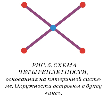 основанная на пятеричной системе. Окружности встроены в букву «икс».
