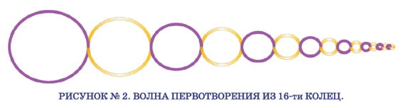 Когда первый этап Церемонии завершился, мы выстроили из структуры «Глобус Бога» 16 колец, которые последовательно связаны друг с другом. Одно кольцо – самое большое, а затем размеры колец уменьшались. Словно восемь восьмёрок, связанных между собой, образовались на территории нашего парка, на равнине, которая носила тогда название Долина Кришны. Сначала мы выстроили восемь восьмерок по прямой линии, образовав особую Волну Первотворения (рисунок № 2).