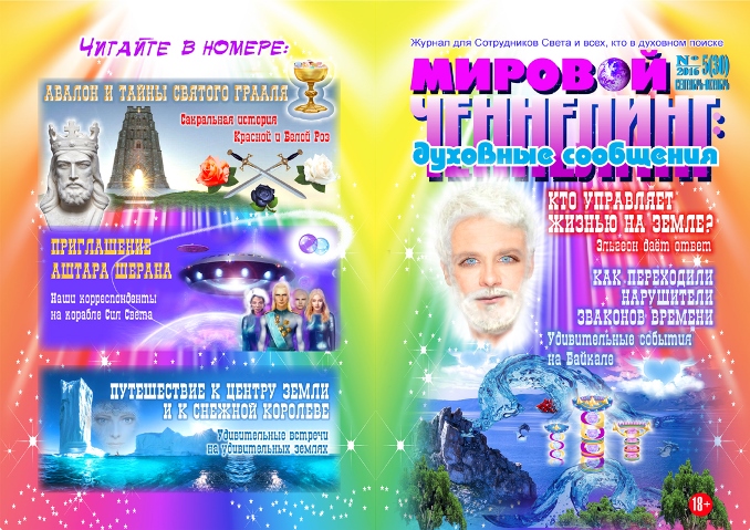 Очередной номер (№5/30, 2016 г.) стал сборником необычных, удивительных световых работ, которые провели наши многочисленные группы Света на просторах планеты. Читатели вместе с нашими корреспондентами совершат необычные путешествия не только к центру Земли и в гости к снежной королеве, но и смогут побывать на борту одного из Кораблей Света флота Аштара Шерана. Этим летом совершила путешествие и редколлегия Журнала. Величественный артефакт в величественном месте – на озере Байкал – увлечёт многих читателей в пространство нового Времени. Откровенный рассказ нарушителя законов Времени не оставит равнодушными тех, кто верит и знает, что путешествия во времени реальны…