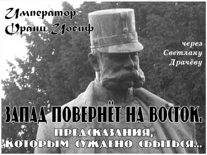 Светлана Драчёва: Первое общение с Императором Францем Иосифом I началось весьма неожиданно в ходе посещения города Вены в марте 2016 года, куда мы отправились вместе с мужем, а затем в этом путешествии к нам присоединилась и наша дочь. Как оказалось, встретились мы всей семьёй здесь неслучайно. Вена ждала нас для весьма интересной световой работы по исцелению рода Габсбургов, которая была завершена уже после возвращения в Москву на занятии Группы Света 2 апреля 2016 года, о чём можно узнать на страницах нашего сайта (http://www.lightgroup.info/events/meetings/2589reportonmeeting02042016.html). А тогда, во время путешествия в Австрию, я и не подозревала, что произойдёт в будущем… Получила задание от главного редактора Журнала Сергея Канашевского дать анонс информации для спецвыпуска «Говорит пятое измерение». И сразу со мной на связь вышла венценосная особа, представитель рода Габсбургов, Император Франц Иосиф I. А вернее – то Существо Света, которое воплощалось как Франц Иосиф.