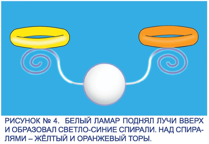 - Два луча Белого Ламара начинают удлиняться, изгибаться, сотворяют «полукольцо». На окончаниях этих лучей образуются синие спирали.