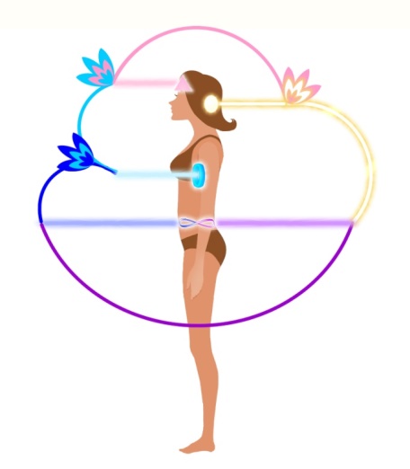 РИСУНОК № 5. Три темпоральных центра (трёхлепестковые пламЁна) объединились с энергосистемой тонкого физического тела.