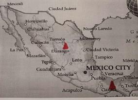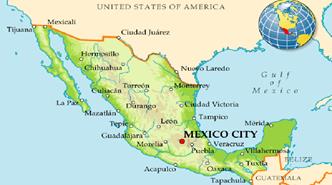 Рис. 1.Карта Мексики (г. Торреон севернее центральной части).