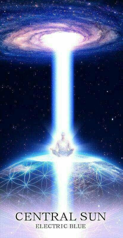 3. Представьте себе столб Света, исходящий из Центрального Солнца Галактики, проходящий через все существ Света внутри нашей Солнечной Системы, через затеняющие друг друга Солнце и Луну, а затем через ваше тело в центр Земли.