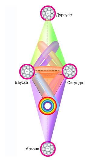 * В узловых точках Кристалла Духовного Возрождения - Аглоне, Дурсупе, Сигулде, Бауске - активируем Аметистовые Кольца, направленные в точки привязки Кристалла 19 мая 2018 г. Школой Сен-Жермена …