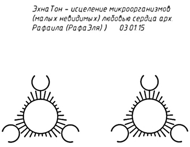 Мы призывали группу целителей, работающих с землёй, а также ЛК Атомарус призвал группу Лемурийских Кристаллов, чтобы они работали, как сеть, помогающая установить контакт с сознанием вирусов. Подключаем к работе Чёрное внутреннее Солнце Земли /это Высшее «Я» нашего Внутреннего Солнца Земли/ и призываем энергию символа Эхнатон - это исцеление микроорганизмов малых невидимых любовью сердца А.А.Рафаэля и это символ, через который мы договариваемся с вирусами.
