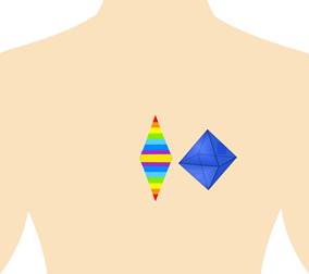 РИСУНОК № 15. ГОЛУБАЯ ВОСЬМИЛУЧЕВАЯ ЗВЕЗДА ВНУТРИ КРИСТАЛЛА ЭХНАТОН, СЛЕВА НА ГРУДИ ЧЕЛОВЕКА.
