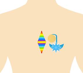 РИСУНОК № 19. ЖЁЛТАЯ ЗВЕЗДА ВНУТРИ КРИСТАЛЛА АКВАРОМ, слева на груди человека.