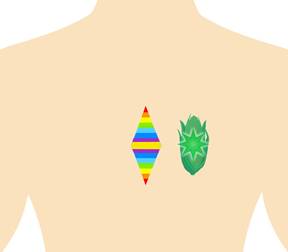 РИСУНОК № 14. Фрактал Кристалла Эхнатон в ЛЕвой стороне груди человека, рядом с фракталом части ВЦСЗ.