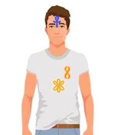 Память обрати в начало, туда, где стал ты частью человека, ушедшего для творчества – от сна САМАДХИ. Над сине-фиолетовой спиралью парят пять звёзд. Глаз с золотым зрачком мы в центр поставим.
