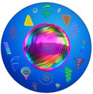 Спираль Суламифь устремляется в самое сердце Кристалла Равель – в центральное отверстие большого голубого тора, и в этом сакральном пространстве рождается Нулевая Точка типа вертикального веретена, в которой закручивается в золотистом потоке бусинки-сферы Суламифь. Так утверждается соединение Спирали Суламифь и Кристалла Равель (Рис. №19).