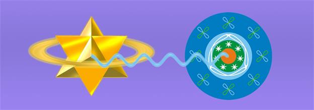 Как только образуется это кольцо, из центра светового артефакта начинает излучаться ГОЛУБАЯ ВОЛНА. И теперь ваша задача – направить эту волну в Кристалл Мирта. Мысленно помещайте фрактал Кристалла Мирта рядом со звёздным тетраэдром и соединяйте их голубой волной.