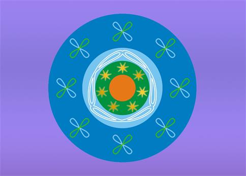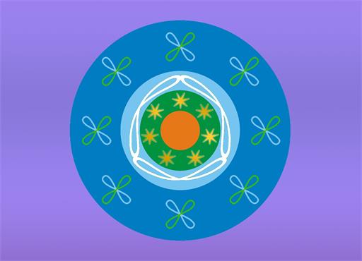 Теперь вы направляете белый луч из центра своей груди во внешний синий тор. И тут же в этом торе рождаются ленты Мёбиуса в виде восьмёрок. Восемь лент окрашены в голубой цвет, другие восемь – в зелёный. Вы своим мысленным намерением сотворяете из двух восьмерок зелёно-голубой знак «Х», то есть особым образом соединяете их, скрещиваете. Следом таким способом объединяются и другие ленты Мёбиуса, выстраиваясь по кругу внутри синего тора. Всего рождается восемь скрещенных между собой лент Мёбиуса. И как только окружность из лент Мёбиуса образуется полностью, так сразу синий тор словно оживает, начинает пульсировать.