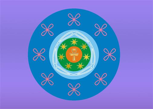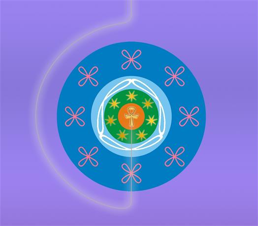 РИСУНОК № 16. АНКХ, ОКРАШЕННЫЙ В ЗОЛОТОЙ, ГОЛУБОЙ, ФИОЛЕТОВЫЙ И РОЗОВЫЙ ЦВЕТА.