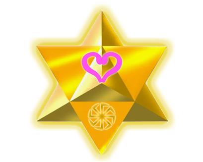 Как только в центре коловрата проявляется золотая спираль, Кристалл Мирта, начинает быстро передавать внутрь него через только что сотворённый канал связи потоки гармонизирующей энергоинформации. Буквально через несколько секунд вращение коловрата прекращается. Он замирает. И нить… нить больше не разматывается… Самое время отправить всему порталу – энергии Любви. Энергия Любви – главная преображающая сила. И вы сейчас проявляете эту Силу, при этом не применяя никаких усилий. Вы можете отправлять сейчас энергии творческой любви в виде ЗОЛОТОГО ЛУЧА. Этот луч исходит из центра вашей груди, черпая свои энергии из Сакрального Сердца. Вы направляете его сначала в один перевёрнутый «вопросительный знак» чёрного цвета, потом в другой… Затем ваш луч прикасается к внешнему контуру портала, к коричневому ромбу. Отправляйте, отправляйте энергии любви негативному порталу как ОБЪЁМУ НЕЛЮБВИ, который жаждет получить любовь… Отправляйте порталу энергии любви как злой спящей красавице, которая, пробудившись, станет гармоничной и начнёт творить добро. И вот с порталом начинают происходить метаморфозы. Коричневый шестилучевой коловрат преображается в восьмилучевой ЗОЛОТОЙ КОЛОВРАТ, чёрные знаки вопроса окрашиваются в волшебный РОЗОВЫЙ СВЕТ и образуют форму СЕРДЦА. А внешний контур ромба также преображается… Сначала мы наблюдаем, как вместо ромба проявляется один золотой тетраэдр, потом с ним сливается второй тетраэдр. И в результате рождается ЗОЛОТОЙ ЗВЁЗДНЫЙ ТЕТРАЭДР или, как его ещё называют, ЗВЁЗДЧАТЫЙ ОКТАЭДР. А внутри него живут и розовая структура в виде сердца, и золотой восьмилучевой коловрат. Так мы сотворяем преображённый портал.