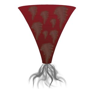 представьте второй негативный энергоинформационный Портал, созданный Силами Сдерживания, как большую тёмно-синюю воронку. Высота воронки – примерно 18 метров. Воронка погружена внутрь земли на глубину 15-ти метров. Тот, кто обладает развитой зрительной нефизической системой, смогут увидеть эту воронку. Верхняя и нижняя части воронки представляют собой волновую поверхность серого цвета. Внутри воронки существует структура, представляющая собой две коричневые спирали, образующую форму, похожую на английскую букву «V» (ВИ).
