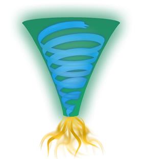 Наш энергоинформационный канал приближается к порталу номер шесть. Перед тем, как соединиться с порталом, он обретает новую форму. Тонкий золотой луч образует спираль из трёх витков. И эта спираль, как сопрягающая часть, проявляется в центре той части портала, которую мы определили, как структуру, похожую на колокол.