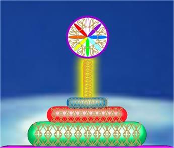 Белый свет проявляет форму этого Кристалла. И мы… мы наблюдаем его как структуру из торов. Внешний тор – синий, потом – тор голубой, затем – тор зелёный, в центре сияет оранжевым светом небольшая сфера.
