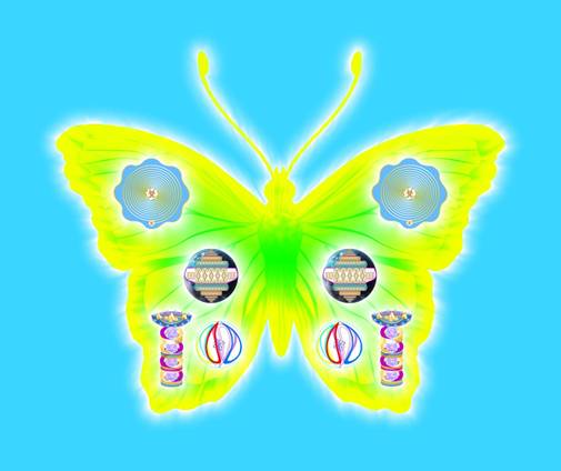 Давайте для удобства Творения создадим символ Гармонии Радости. Увидьте на голубом фоне (энергии магнетизма) БАБОЧКУ, которая распахнула свои крылья и приглашает присоединить к ней 13-ю спираль времени. Эта спираль с лёгкостью садится на её верхнее крыло, а затем также непринуждённо зеркально переносится на её второе верхнее крыло. На нижнее крыло садятся уже известные нам символы: Кристалл Майтрейи, Цветок Пространства-Времени нового эволюционного цикла и Новый Свод Голубя (Рис.6).