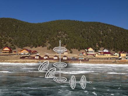 Итак, наступает важный этап работы. Мы помещаем главную вертикальную ось ПАРУСА МАЙТРЕЙИ на озере БАЙКАЛ в районе Большого Голоустного, реперной точкой можно считать пансионат «Алые паруса» (Фото 1).