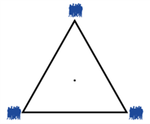 Рисунок № 14. Три группы исполнителей стоят по вершинам равностороннего треугольника.