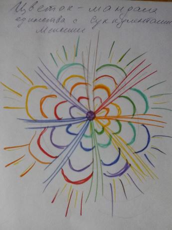 Очень интересно... на пирамиде мне подарили ларец из рук Николая Рериха (как на картине Святослава Рериха)... Ларец с дарами раскрыла на следующий день: длинные бусы из белых сферочек - дар ясновидения, бусы из розовых цветов - дар Божественной Любви, золотые многоярусные цепочки - дар яснознания... Благодарю девочек Светлану и Диану, Николая Рериха и всех Светлячков за сотворчество... А цветок - мандала активировался в сакральном сердце очень красивый, многомерный, лучистый и волнообразный... Сделала набросок...