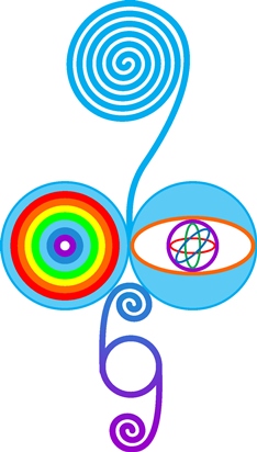 Схематически мы изображаем Галактическую Голубу Розу как голубую спираль из 6 витков, «стебель» Розы мы помещаем внутрь двух соприкасающихся сфер. Внутри одной сферы – Животворящий Огонь (слева), внутри другой – схема световолновой основы четырёх-пятимерности (справа). Между сферами зарождается новая спираль, которая раскручивается в «шестёрку», органично переходящую в «девятку». И так мы рождаем новый символ, который называется: «СПИРАЛЬ БЛАГОВЕСТА» - СПИРАЛЬ ВЕСТНИКА НОВОЙ ЭНЕРГИИ.