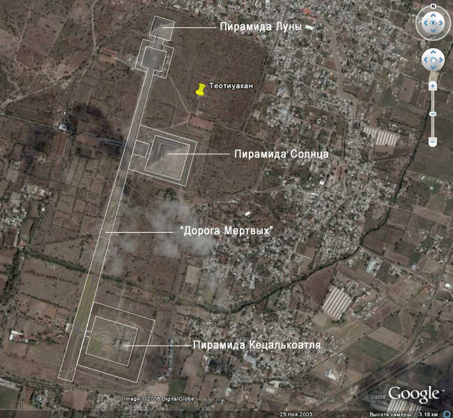 Вот посмотрите рисунок, расположение пирамид в Теотиуайкане.