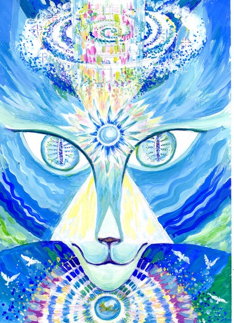 Отклики: Было очень тепло. Волновые энергии синие. Много Красных и синих кристалликов. Делимся впечатлениями шёпотом, как чем-то сокровенным. Информацию получали прямо с Сириуса. А песочные часы заполнялись кристалликами. Фиолетовое платье у Изиды. Много золота, молочной энергии. Космическая музыка сопровождала этот процесс. Торы вокруг Сатурна встали и вращались как оси гироскопа. Энергия кристаллическая, осязаемая, возвышенная. Сатурн – его кольца, две оси как стрелочки встали, образовалась как сфера. У Богини платье как пирамида, вот и Сириусянский символ. Пошли ромбы. Богиня на лодке. Лодка перемещается на голову (как серп) и Сириус вверху между рожками Богини Хатхор. Много голубого цвета. Она очень молодая и красивая Вероника Толченова нарисовала нашу встречу с Паскатами.