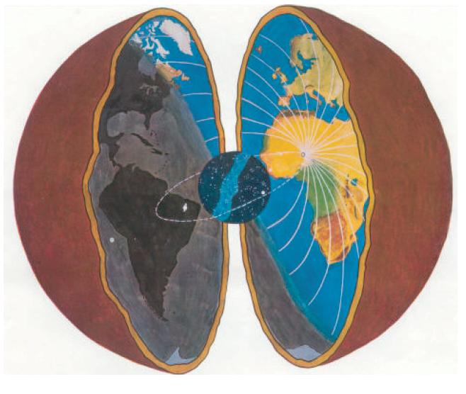 Постепенно энергии центрируются, выпуклость выравнивается, и ярким светом загорается Алтарь Всемирного Храма Огней Вознесения - мы приветствуем стоящих в центре нашего сфероида представителей Внутрипланетных миров.