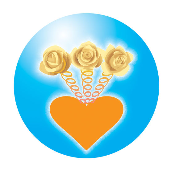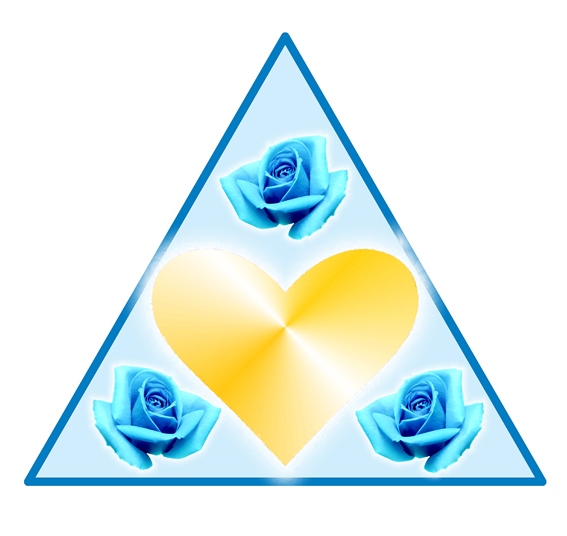 РИСУНОК №5. ЗОЛОТОЕ СЕРДЦЕ И ТРИ ГОЛУБЫЕ РОЗЫ, ВПИСАННЫЕ В РАВНОСТОРОННИЙ ТРЕУГОЛЬНИК.