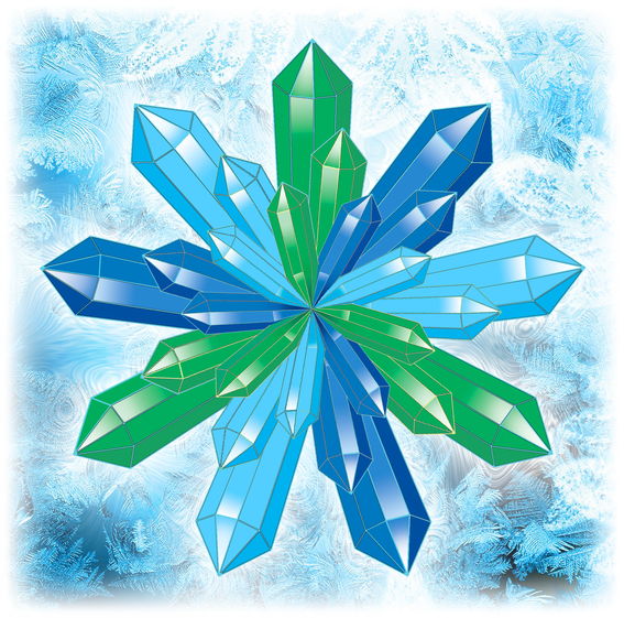 РИСУНОК № 2. «СНЕЖИНКА» - ПОРТАЛ ВОЗНЕСЕНИЯ КРИСТАЛЛИЧЕСКИХ ЛЮДЕЙ, СОСТОЯЩИЙ ИЗ КРИСТАЛЛИЧЕСКИХ ДРУЗ - СИНИХ, ЗЕЛЁНЫХ И ГОЛУБЫХ.