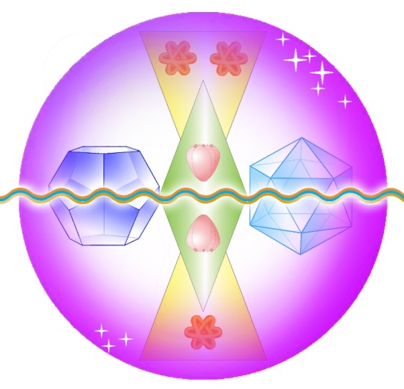 А теперь, после того, как мы с вами познакомились, давайте перейдём к совместному Творчеству. Мы создадим с вами новый энергоинформационный пакет для развития ЯДРА СТИХИЙ, как сочетания Высших Стихий, в вашем четвёртом измерении уже сейчас. Поможем начать формироваться новому переходному Ядру Стихий из четвёртого в пятое измерение. Работать мы станем с вами со структурой Нулевая Точка 13:20. Однако, в центрах её спиралей будут уже другие структуры.