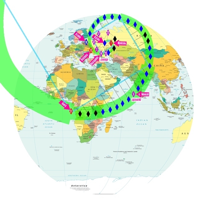 Рис. 1 . Расположение Лемурийских Кристаллов в Восточном полушарии.