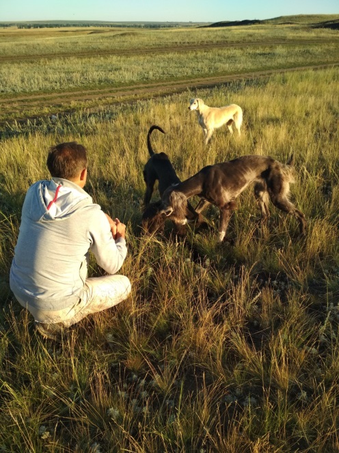 Время одновременной работы нашей группы и байкальской было оговорено заранее. 7 августа 2017 года, ранним утром, мы собрались в степи для выполнения ритуала. Утро было солнечное и довольно прохладное. Мы вышли за деревню, в которой жили, на заранее выбранный холм с ровной вершиной. От крайнего дома деревни с нами в степь пошли три собаки, которые и остались с нами на всё время Служения. Они принесли Сирианские энергии.
