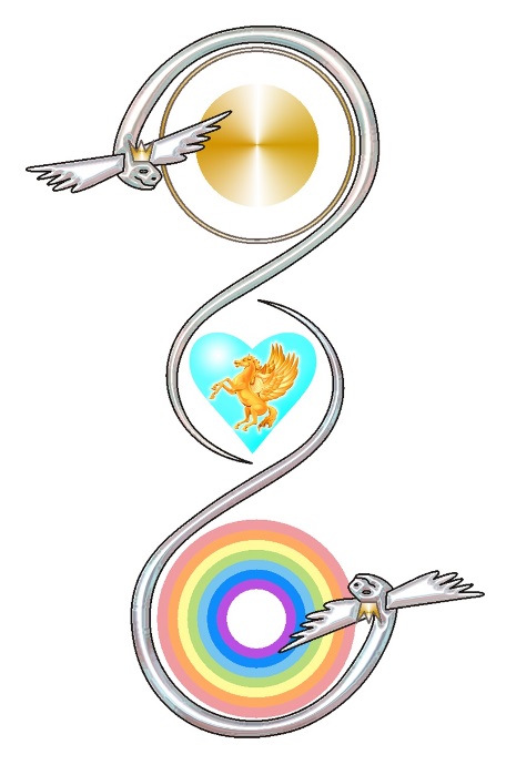 И снова вопрос – что делать дальше? Как закончить формирование НТ, активирующей Портал Крылатый Змей? Вы понимаете, что снова нужен Золотой Ключик. Но как его использовать? О!!! Кто-то снова привлекает ваше внимание! Это Золотой Крылатый Конь в Голубом Сердце призывно машет Крыльями… И вы доверчиво прикасаетесь к нему своими Золотыми Ключиками… Золотой Конь увеличивается в размере… Встаёт перед вами в полный рост и во всей своей красоте и величии бьёт волшебным копытом… Во все стороны летят искры Огня… И вы видите, что серебристая Змея, сформировавшая верхнюю сферу, делает своё зеркальное отражение, даёт жизнь продолжению структуры НТ.