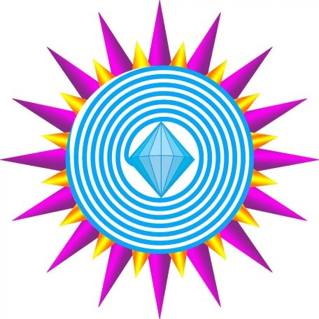 Де-метрия наш символ помещает в Огонь Звёздного Единства в середину ромба и символ, вращаясь по часовой стрелке, создаёт 16 маленьких сердец на каждом лучике звезды и вокруг большое золотое сердце, создавая новый символ для передачи Энергии Любви и Света…
