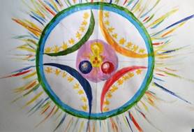 Призываем к Со-творчеству ОГОНЬ ПРОМЕТЕЯ. Символически ОГОНЬ представлен как ТРИЕДИНСТВО трёх цветов Пламён, расположенных одно в другом. Три цвета символизируют Единство Духа (синий цвет), Времени (голубой цвет) и физической материи (красный цвет) (Рис.2).