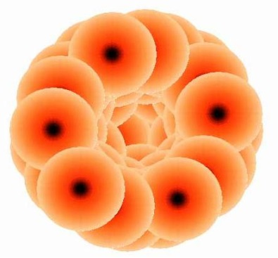 Если заглянуть внутрь фуллерена, то мы обнаружим только пустоту, пронизанную электромагнитными полями. Другими словами, мы увидим некое полое пространство, диаметром около 0,4 нм, содержащее “ничто” – вакуум, заключённый в углеродную оболочку, как в своеобразный контейнер. Причём стенки этого контейнера не позволяют проникновению внутрь него каких-либо материальных частиц (ионов, атомов, молекул). А само же полое пространство, как бы часть космоса, скорее есть нечто, чем ничто, способно участвовать в тонких, информационных взаимодействиях с внешней материальной средой. Молекулу фуллерена можно назвать “вакуумным пузырьком”, для которого не подходит общеизвестный тезис о том, что природа не терпит пустоты. Вакуум и материя – две основы мироздания - гармонично объединились в одной молекуле.