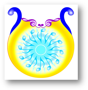 Перед нами проявилась и Лира Орфея. Она как солнышко, струны – скрипичные ключи, а в центре золотой треугольник с голубой сферой внутри.
