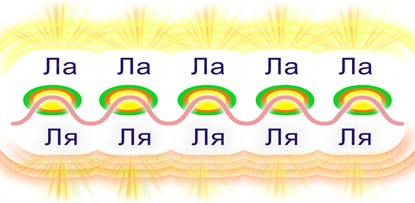 «Л» – волна пятимерия. «Я» – волна четырёхмерия. В итоге получается нота «ЛЯ». И это – один из звуковых кодов полимирной структуры