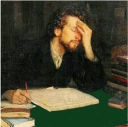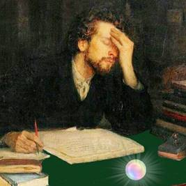 Раздвигается занавес... На сцене - кабинет учёного, исследователя, книжника. Большой стол, заваленный бумагами и свитками. Огромное количество книг на стеллажах. За столом худощавый, усталый молодой человек: опущенные плечи, грустные серо-голубые глаза.