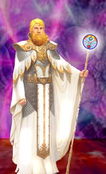 В Храме нас встречает Златоглав. Он тоже проявлен в человеческом облике. Это высокий статный мужчина в белых одеждах, расшитых золотыми узорами. Его густые вьющиеся волосы тоже отливают золотом.