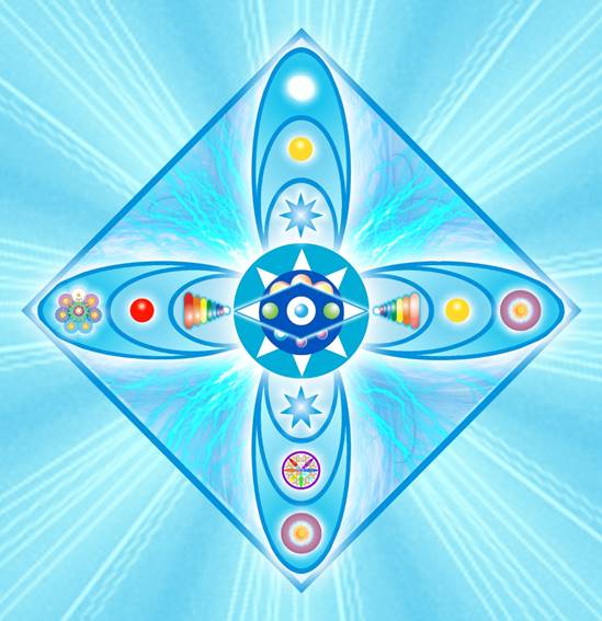 В центре неё находится "ВОСЬМИЛУЧЕВАЯ ЗВЕЗДА И ВСТРОЕННЫЙ В НЕЁ МАГНИТНЫЙ ТОР, ОБЪЕДИНЯЮЩИЙ СФЕРЫ ВСЕХ ИЗМЕРЕНИЙ СЕМЕРИЧНОСТИ И ВОСЬМЕРИЧНОСТИ и содержащий древний символ "Око Бога". «7» и «8» начали взаимодействовать в одной сфере! Причём важно понимать, что эта сфера – сфера ВОСЬМИ. Тут изначально живут восьмеричные ленты Мёбиуса, тут – мир восьмого измерения, территория восьмеричности. То есть в нашей схеме СЕМЕРИЧНОСТЬ ПРОРОСЛА В ВОСЬМЕРИЧНОСТЬ."