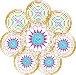 Все они являются носителями магнитных энергий. Верхние лепестки передают магнитные и гравитационные энергии и новые генетические программы от ВЦС 13-ти мерной и 16-ти мерной Вселенных. Восьмилучевая звезда несёт энергии восьмеричности (малый верхний лепесток).