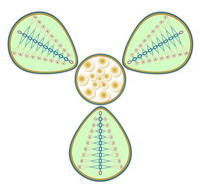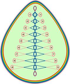 После этого мысленно вновь возвращаемся к структуре ЛАДАМИРА. Из золотой сферы начинаем двигаться сначала к центру фиолетовой сферы, затем перемещаемся в центр синей сферы. И выражаем намерение на объединение текущего воплощения с энергоинформационными потоками будущего. Мысленно находясь в центре синей сферы Ладамира, окружаем Золотую Сферу Ойкумена тремя лепестками в форме яйца – тремя фракталами матрицы Ойкумена… То есть сотворяем структуру «Вишну Арджуна» (рисунок № 2).