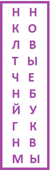 Мы определили, что Матрица Неклеточного Генома опирается на 10 согласных букв и на некие буквы, которые отражаются в словосочетании НОВЫЕ БУКВЫ. Подсказка была дана в Задании Диогены. Из словосочетания «Неклеточный Геном» мы удалили гласные буквы. И сопоставили их с буквами словосочетания «Новые буквы» (то есть произвели процесс комплементарности). В каждом ряду получилось по 10 букв! Словосочетания «Неклеточный Геном» без гласных (Н-К-Л-Т-Ч-Н-Й-Г-Н-М) и «Новые буквы» являются той необходимой основой, которые формируют Матрицу Неклеточного Генома для восходящей и нисходящей ветвей эволюции. Порядок комплементарности таков (см. рисунок № 3).