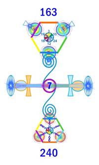 Над верхней структурой загорелся код – 163, а внизу код – 240. Цифры поплыли навстречу, объединились образовался общий код – 7 (240=6 163=10 6+10= 16=7) двух вторых программ ЛК Метахара и ЛК Геланий. Полилась весёлая музыка, Все пустились в пляс…Пространство постепенно наполнилось фиолетовым светом, закружился вихрь, подхватил нас и перенёс в другое пространство.