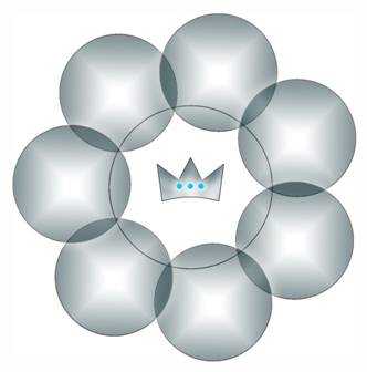 Вокруг Космических Огней Вознесения выстроились Земные Огни Вознесения (Синий цвет полукружий - сияние Огней. Красный цвет указывает на связь с земными структурами, с Внутренним Центральным Солнцем планеты.)