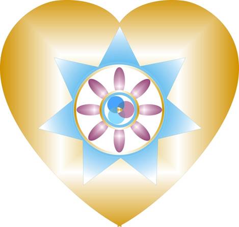 Вокруг Обновлённого символа Объединённого Огня Вознесения выстраивается Волна Первотворения, состоящая из голубых потоков энергий ПервоВоды и из золотых энергий Огня Алтая. В местах пересечения потоков сияет Огонь Любви Творца.